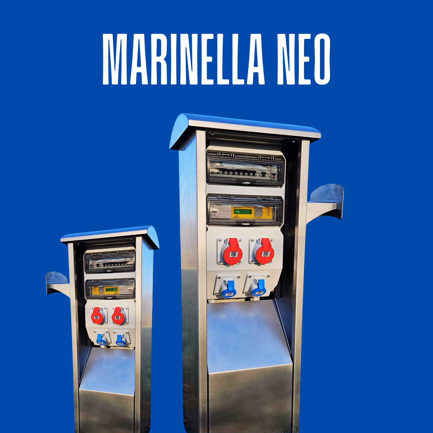 Marinella NEO is a smart service pedestal designed for controlled distribution of electricity and water in marinas and harbours. It combines durable stainless-steel construction with digital service management, supporting modern port operations while maintaining a clean and consistent design.